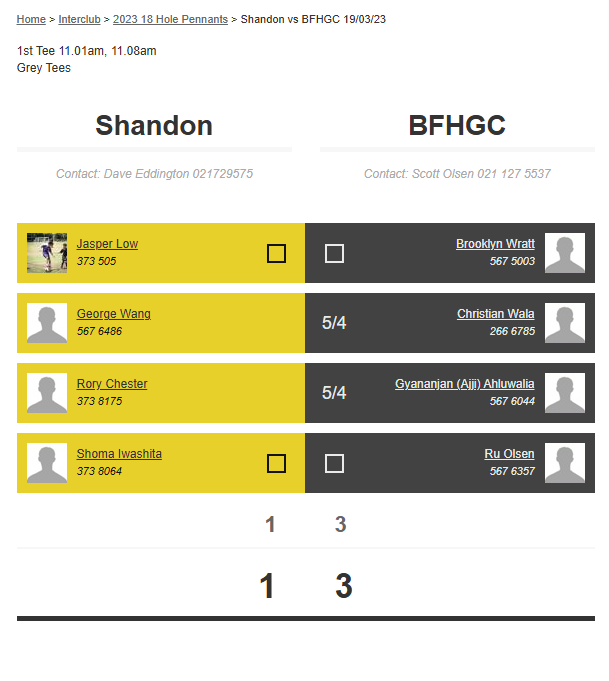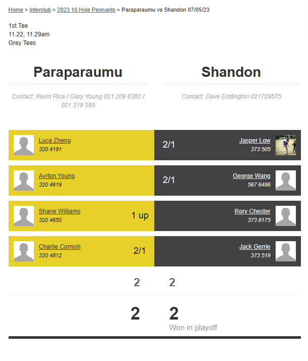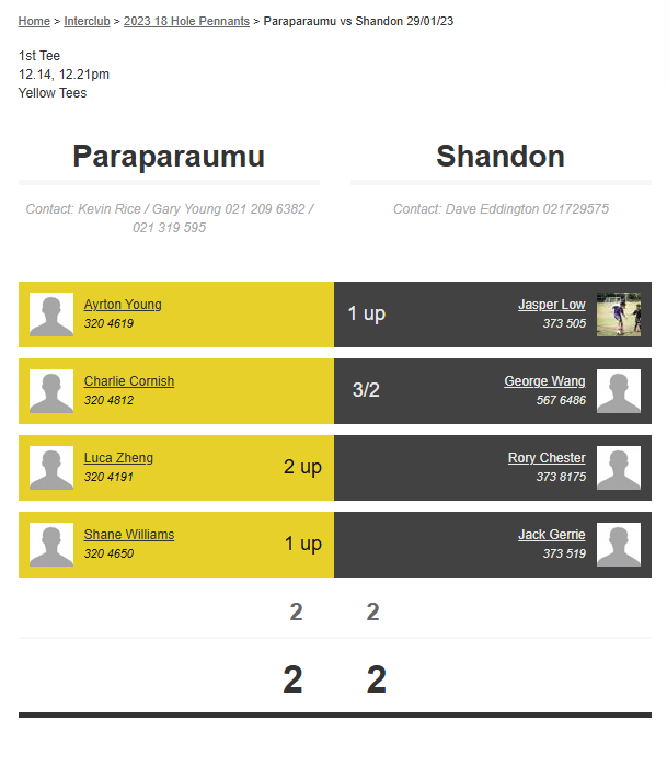 Teams: Paraparaumu Vs Shandon