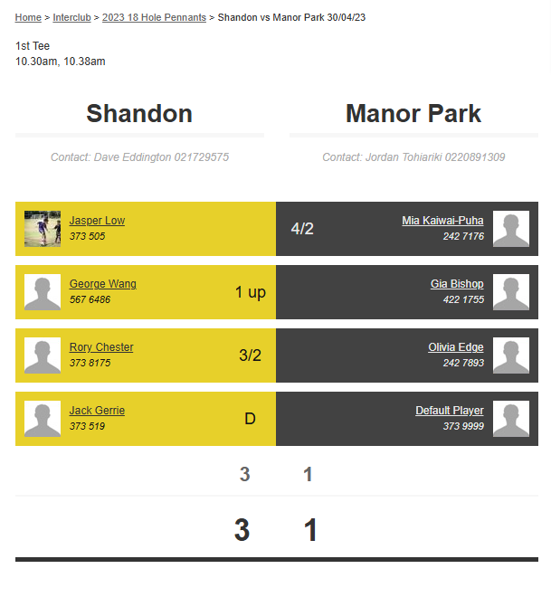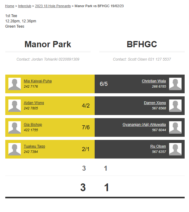 Teams: Paraparaumu Vs Manor Park