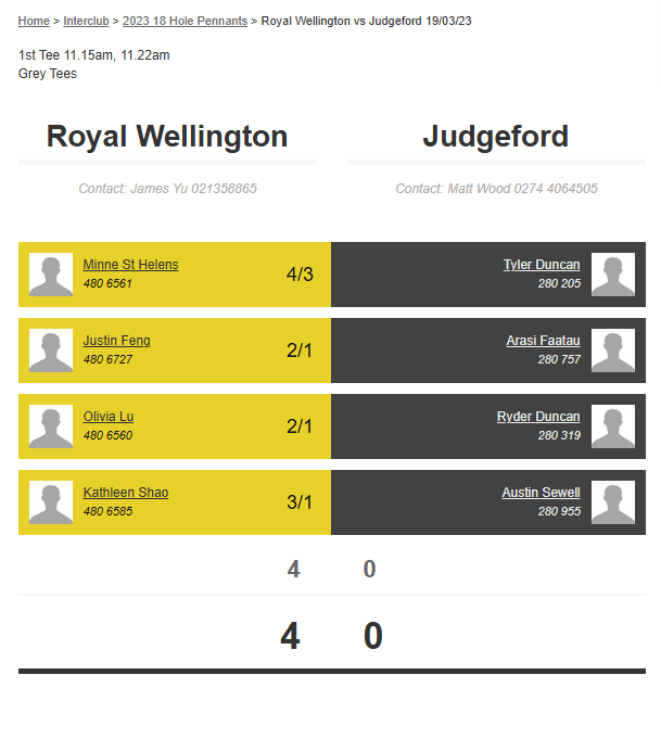 Teams: Royal Wellington Vs Judgeford