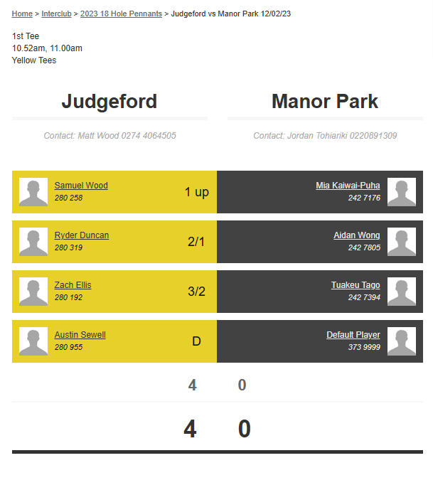 Teams: Judgeford Vs Manor Park