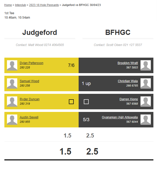 Teams: Judgeford Vs Bfhgc