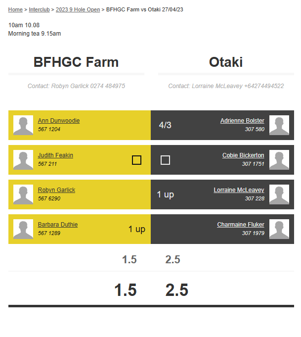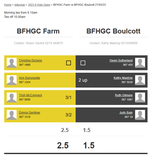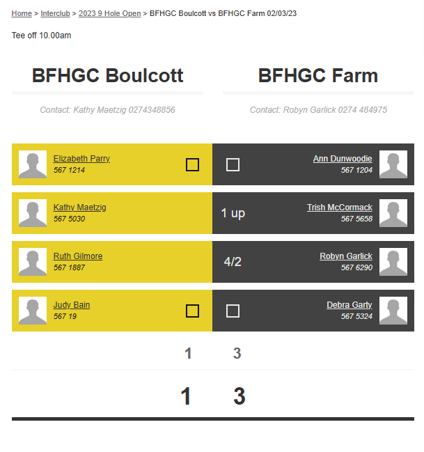 Teams: Bfhgc Boulcott Vs Bfhgc Farm