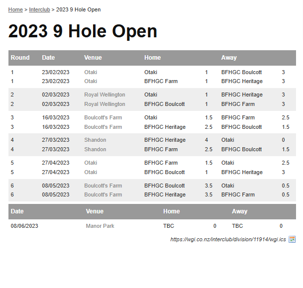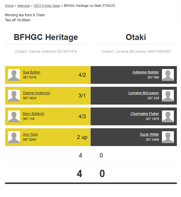 Teams: Bfhgc Heritage Vs Bfhgc Boulcott