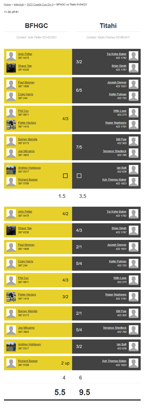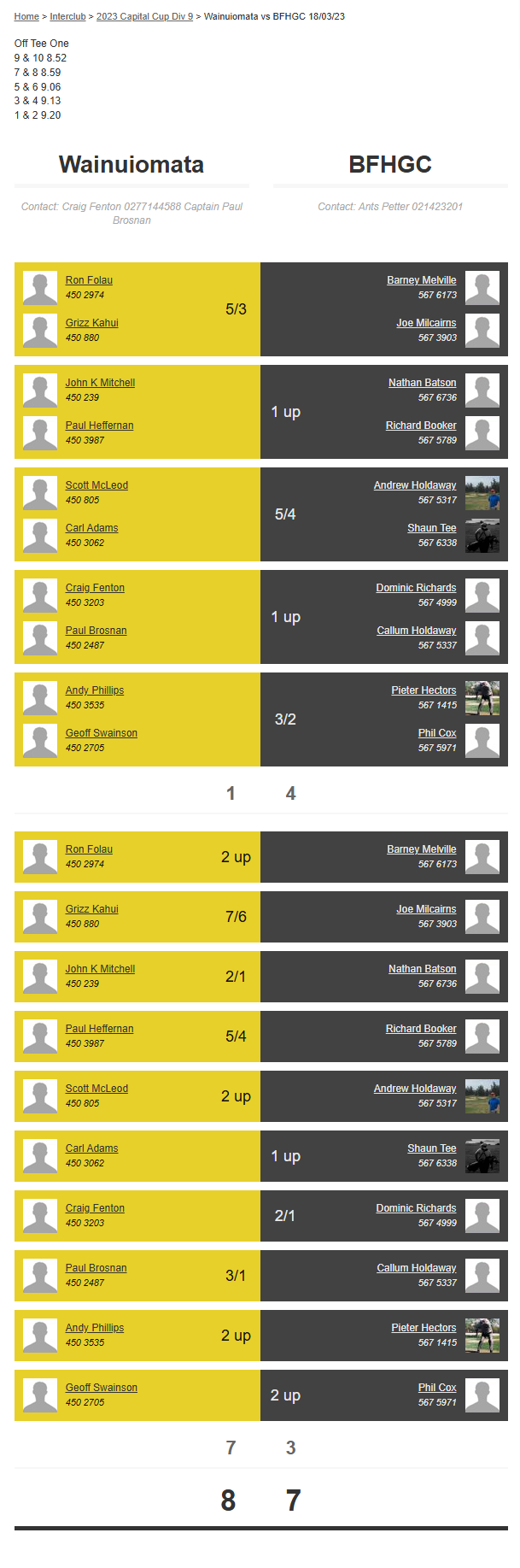 Teams: Otaki Vs Bfhgc