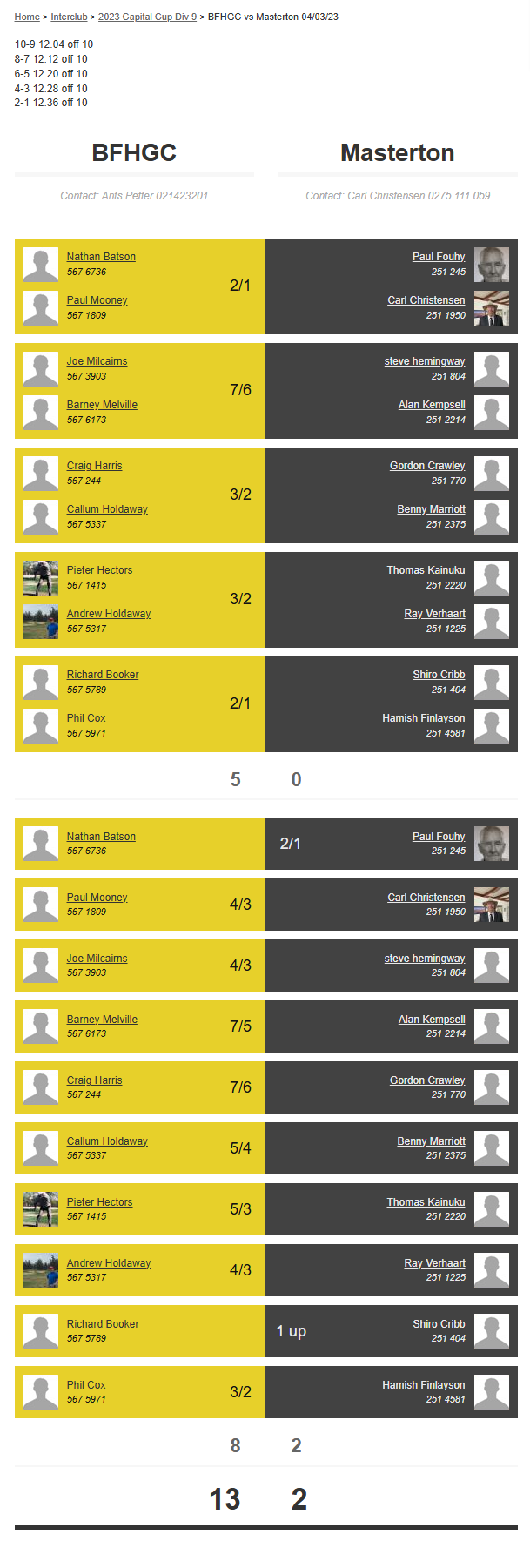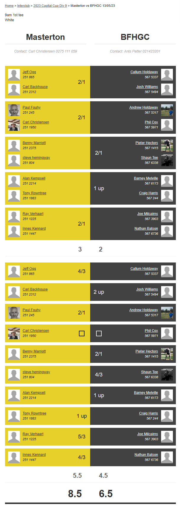 Teams: Bfhgc Vs Masterton