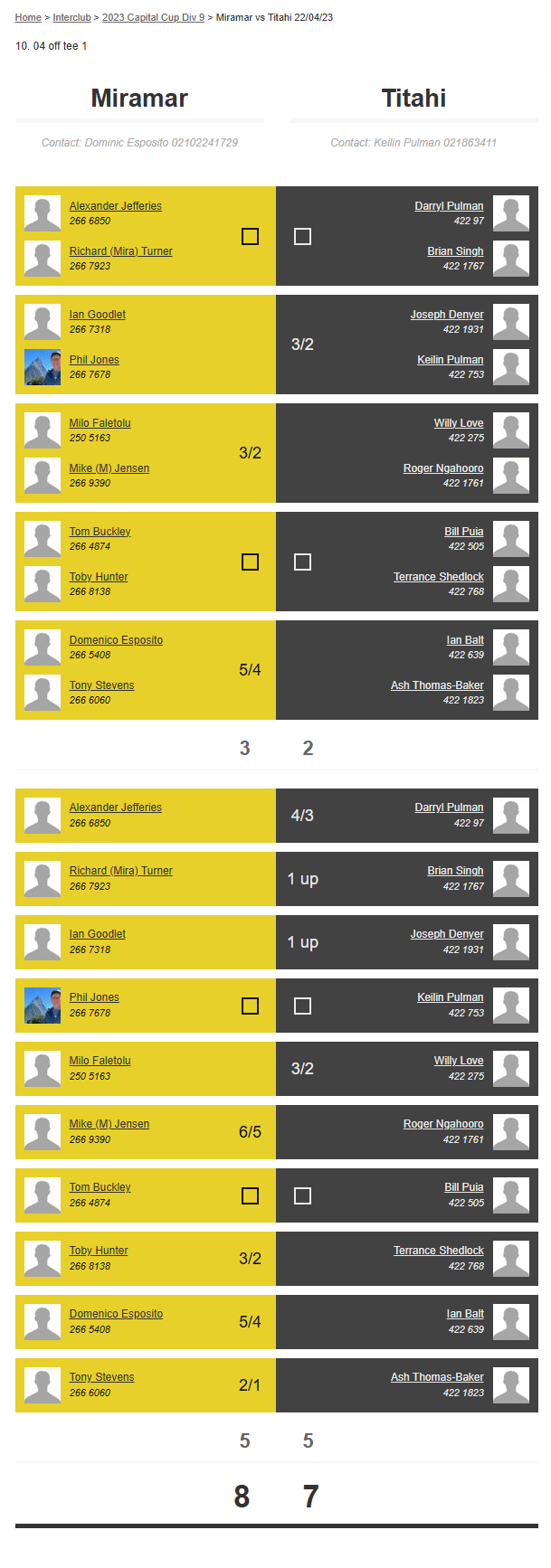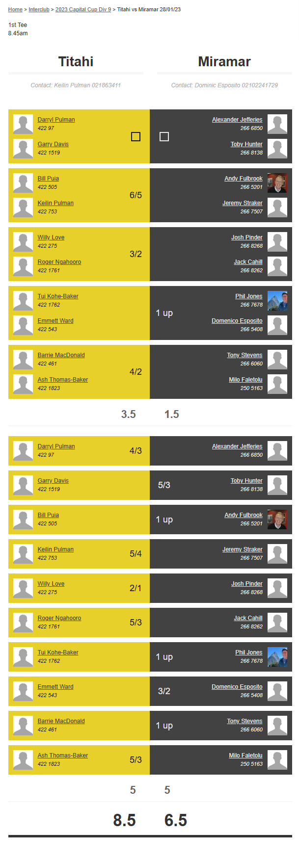 Teams: Miramar Vs Titahi