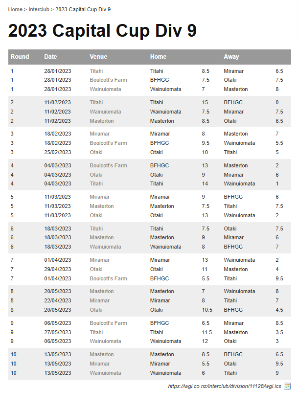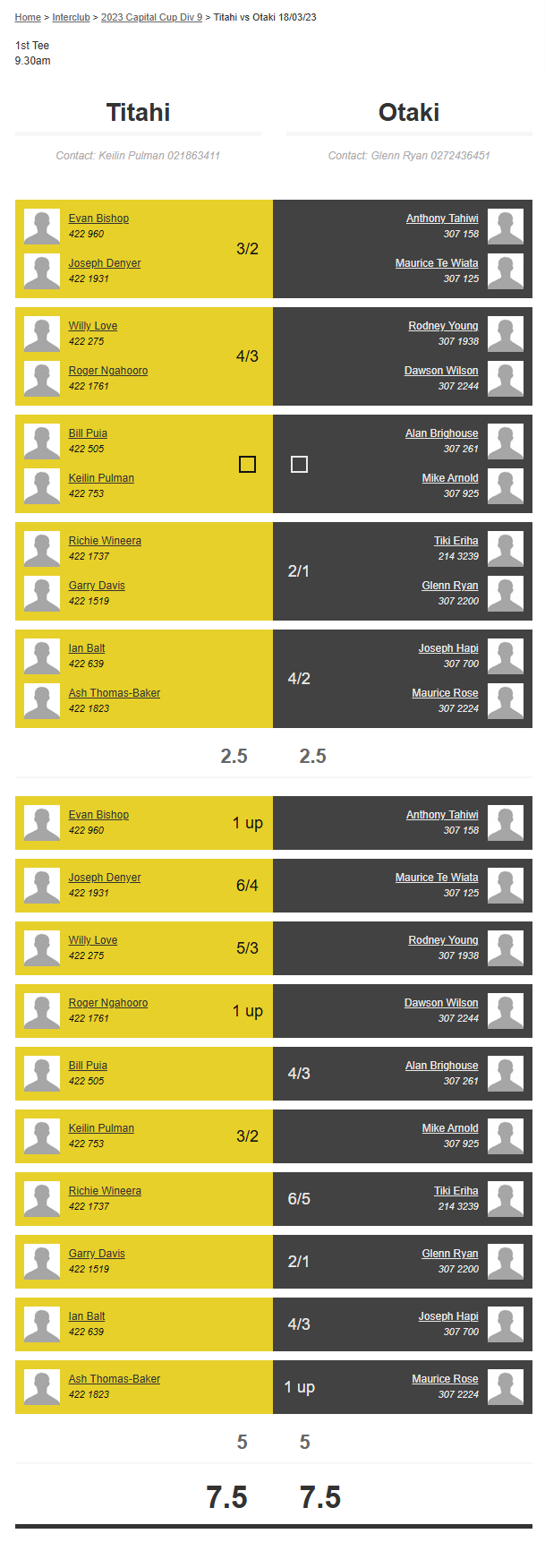 Teams: Titahi Vs Otaki