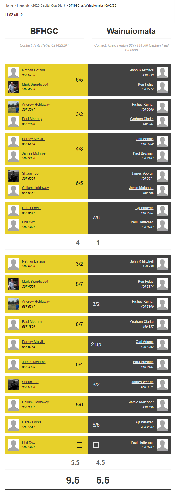 Teams: Bfhgc Vs Otaki