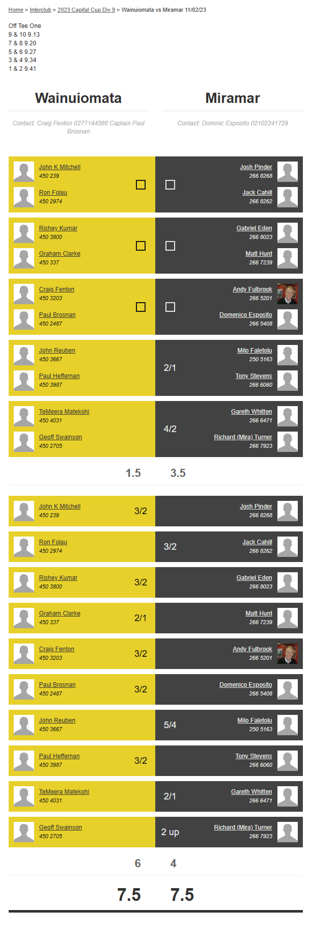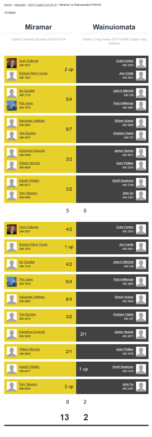 Teams: Miramar Vs Otaki