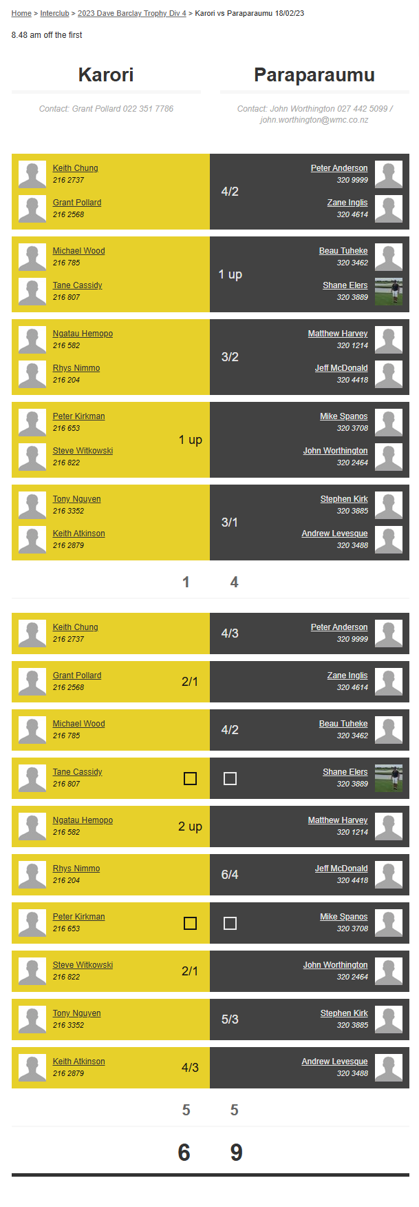 Teams: Paraparaumu Vs Karori