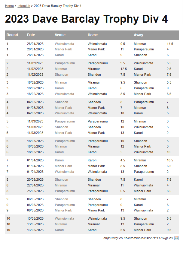 Teams: Karori Vs Miramar