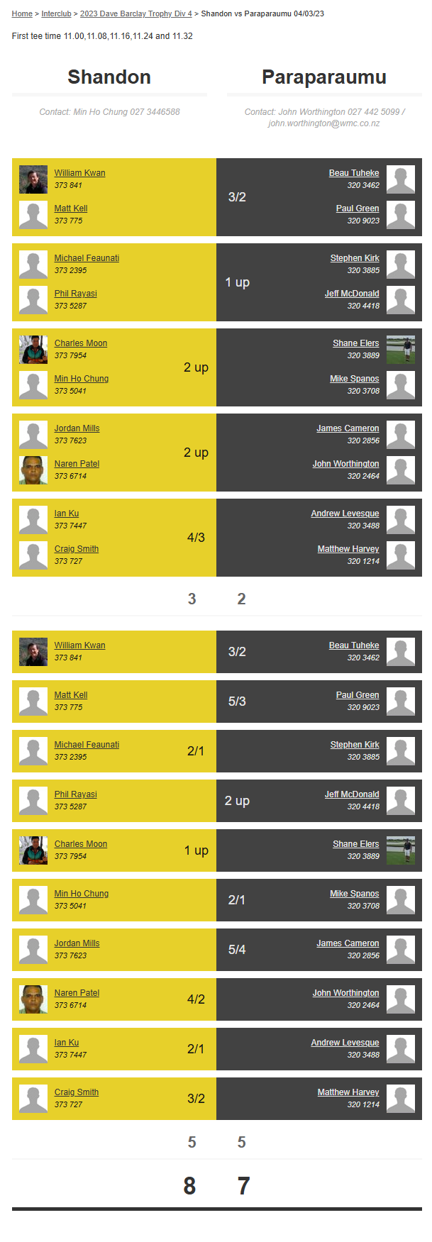 Teams: Paraparaumu Vs Shandon