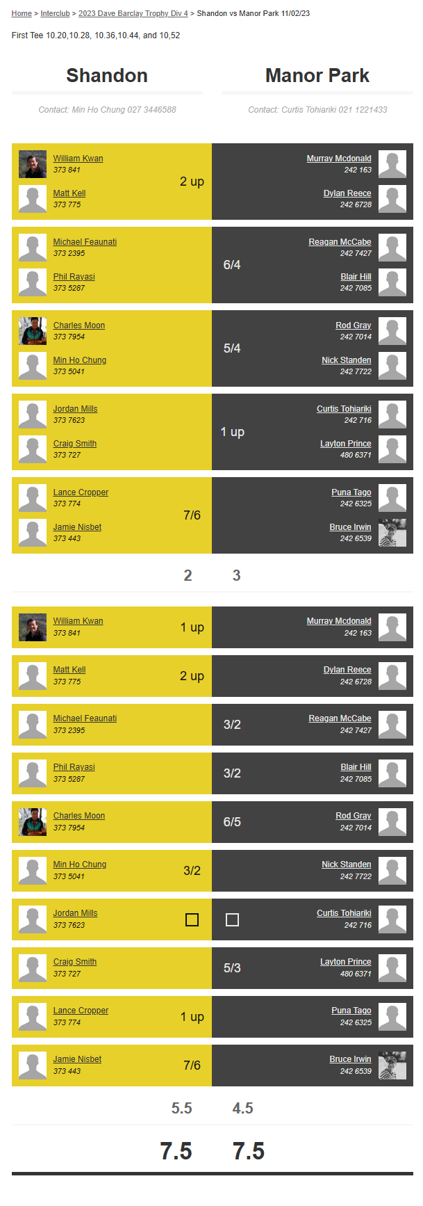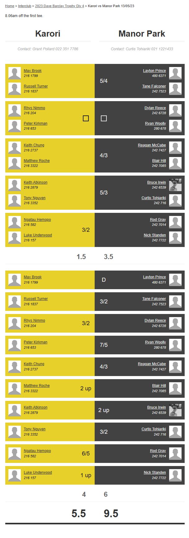Teams: Manor Park Vs Karori