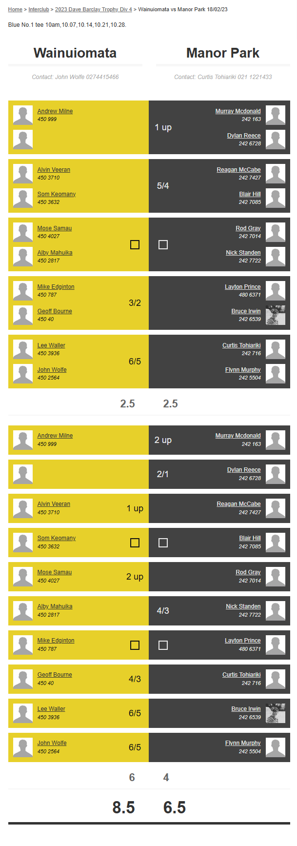 Teams: Manor Park Vs Wainuiomata