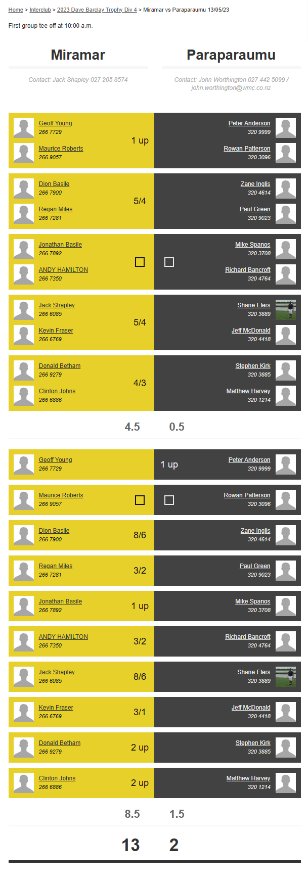 Teams: Paraparaumu Vs Miramar