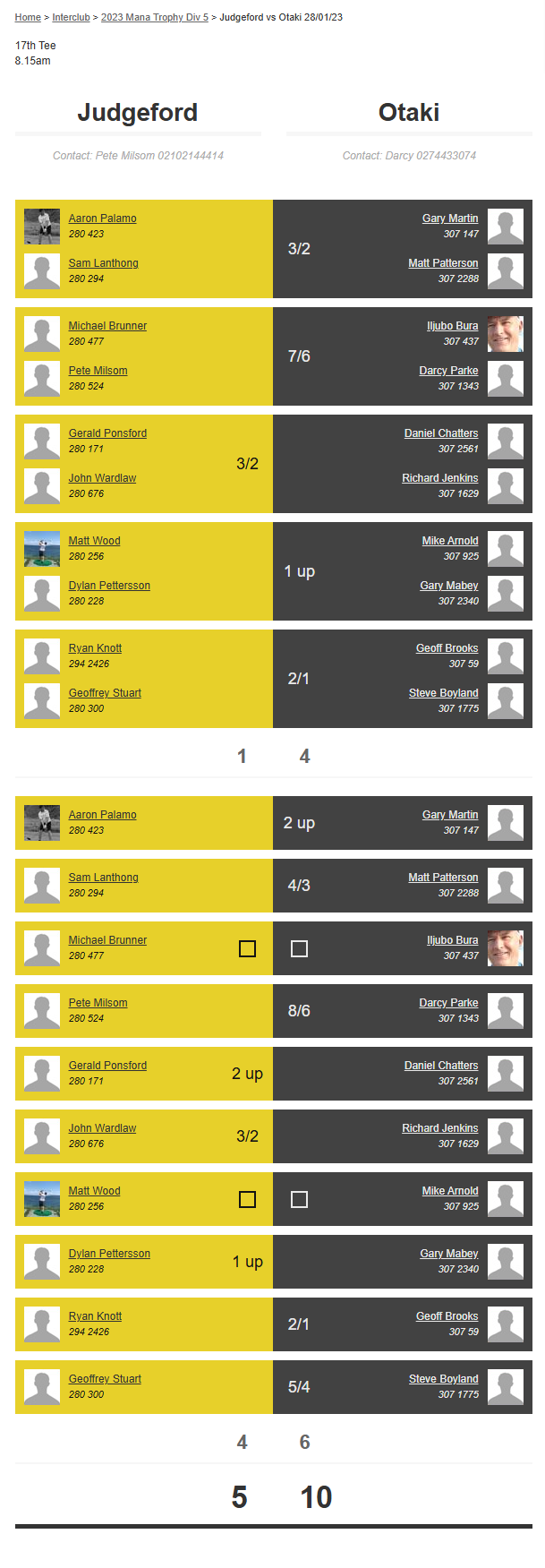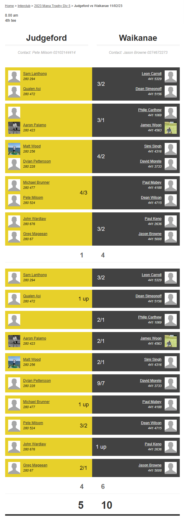 Teams: Judgeford Vs Miramar