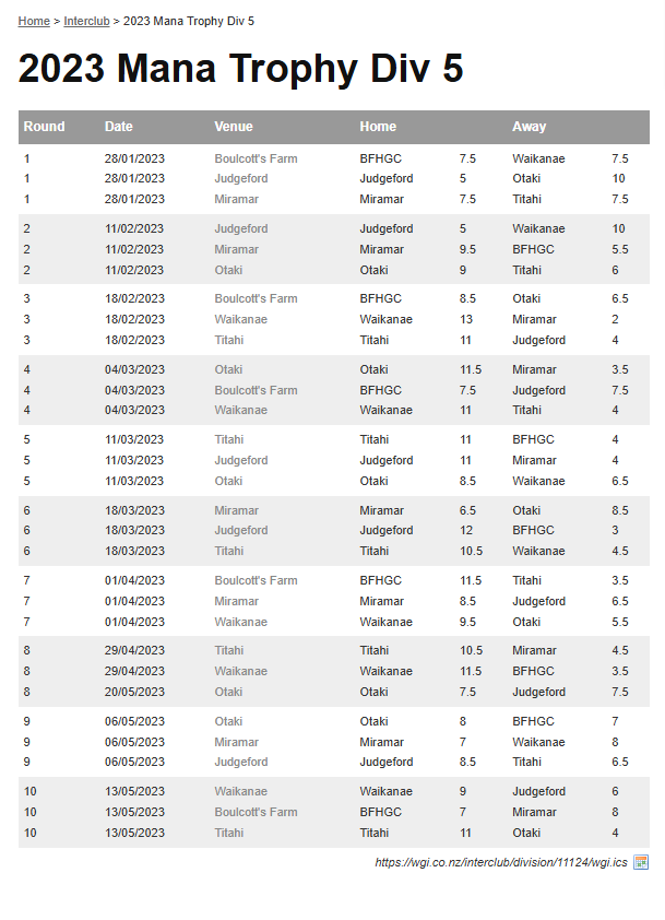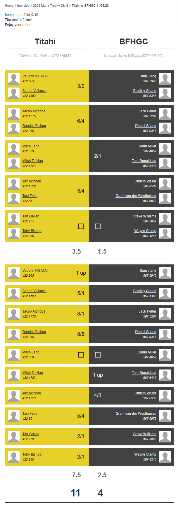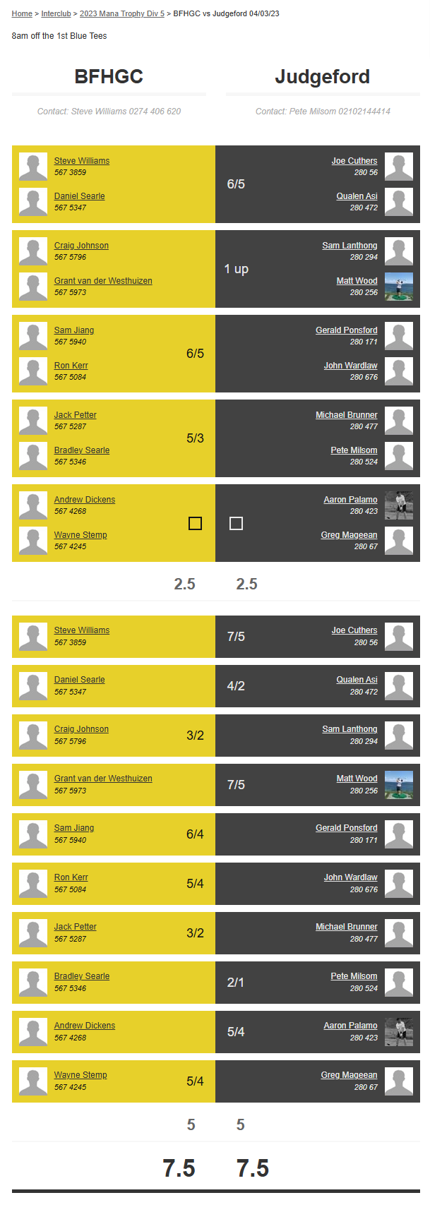 Teams: Waikanae Vs Bfhgc