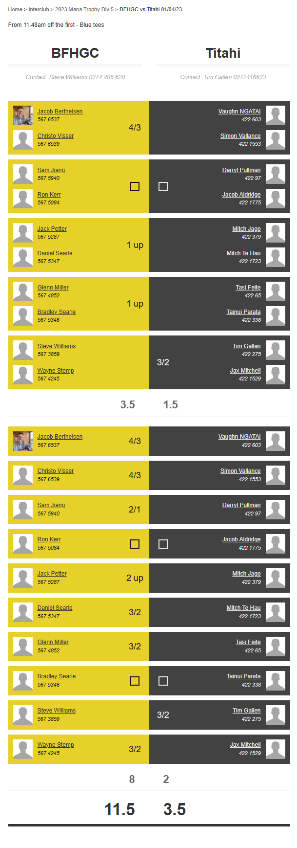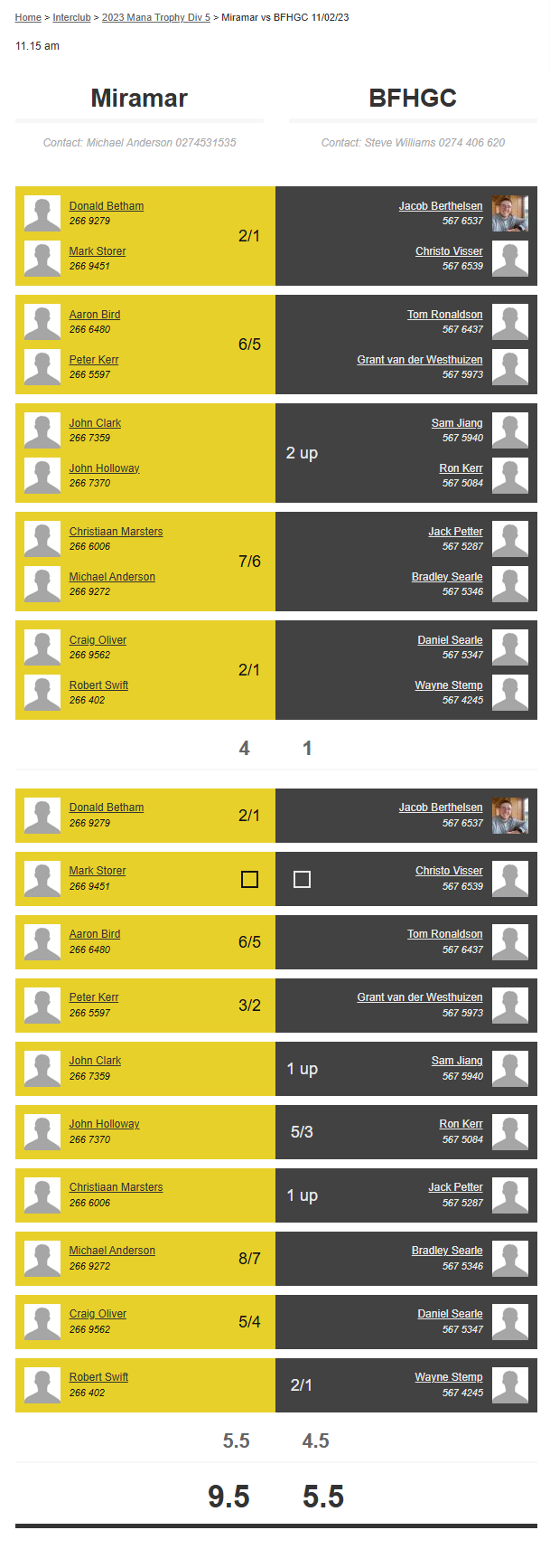 Teams: Bfhgc Vs Waikanae