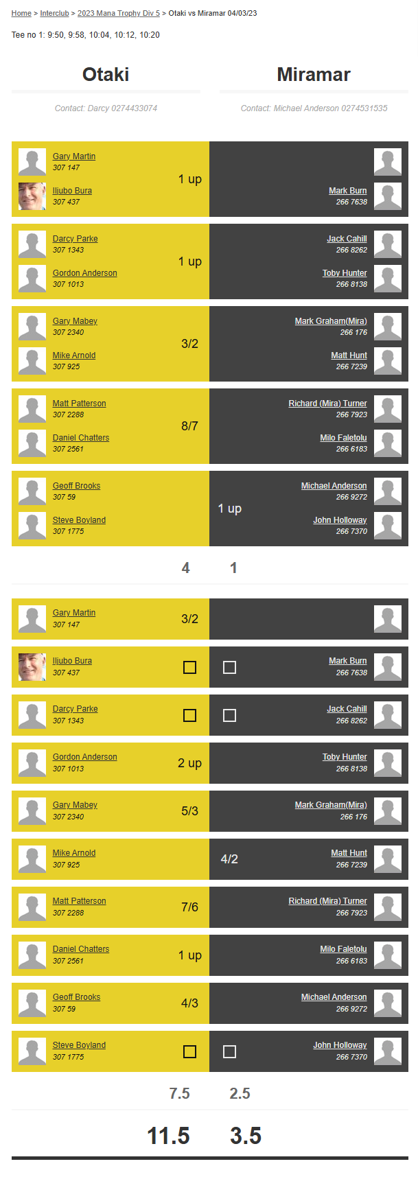 Teams: Otaki Vs Miramar