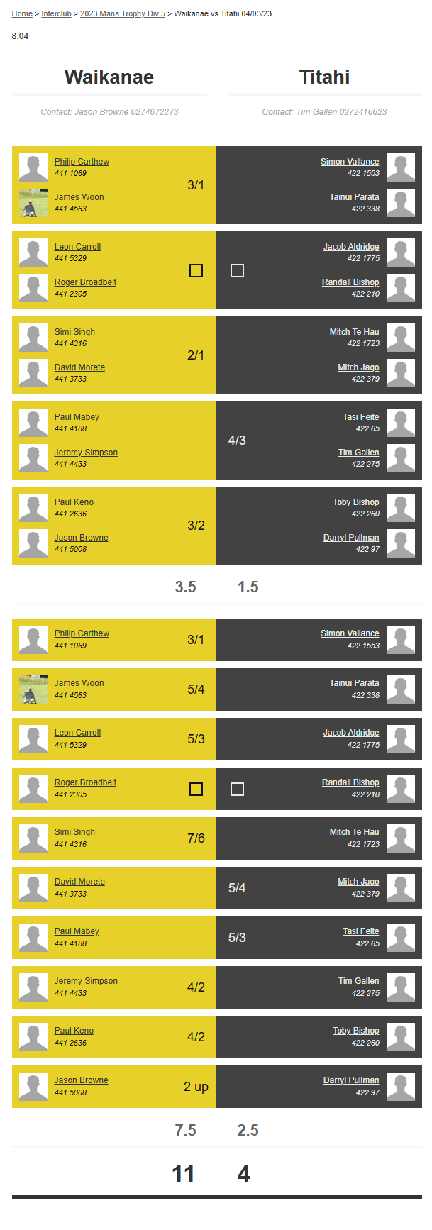 Teams: Waikanae Vs Titahi