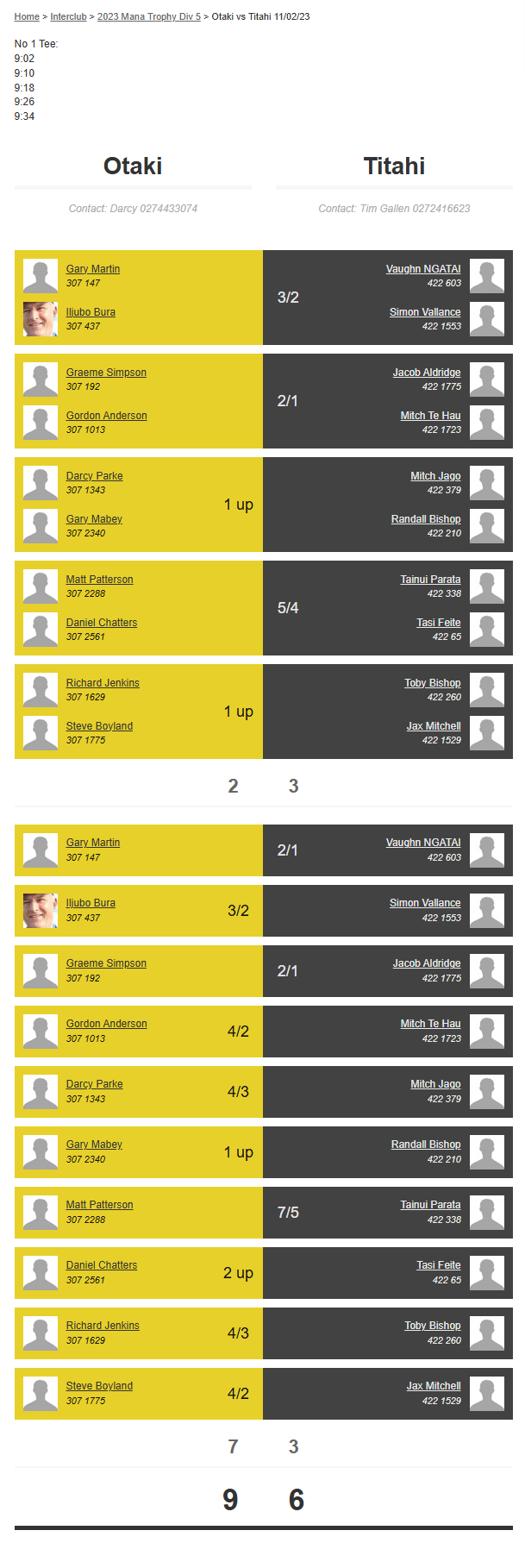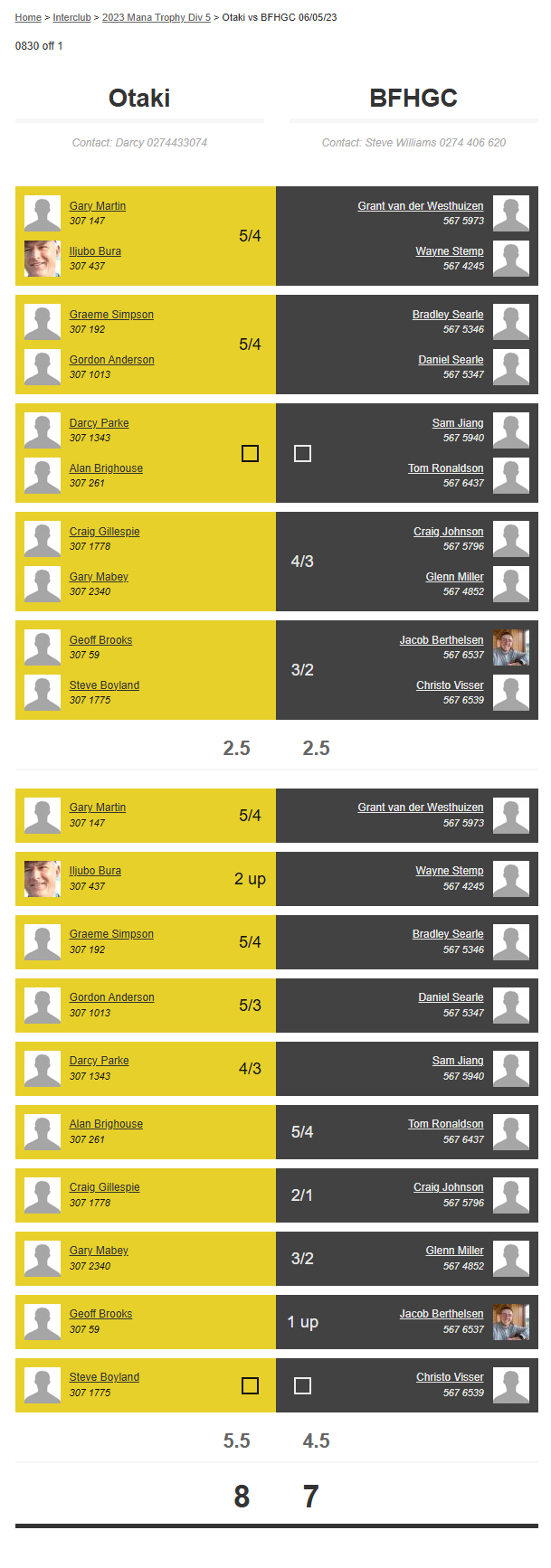 Teams: Otaki Vs Bfhgc