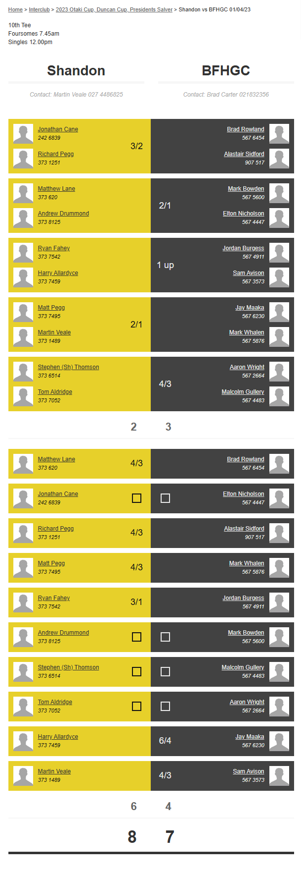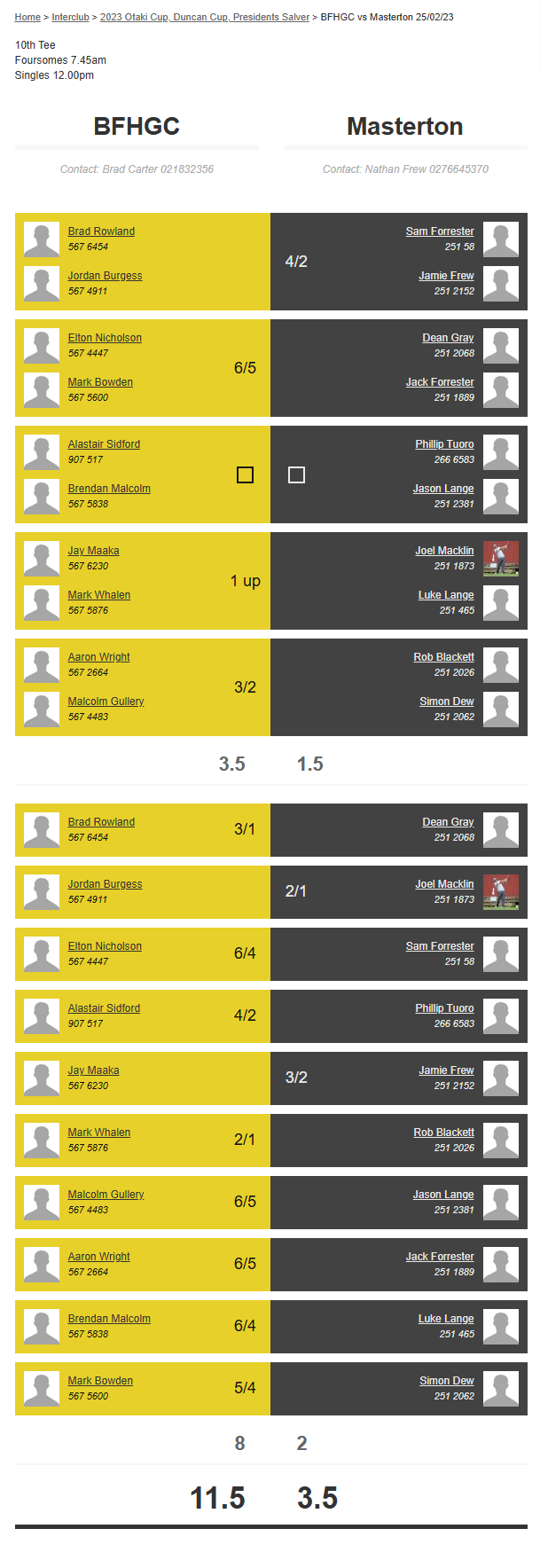 Teams: Bfhgc Vs Masterton