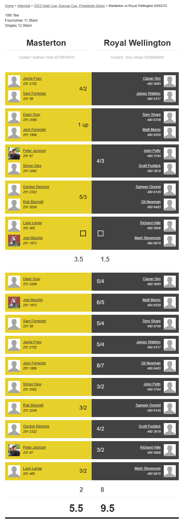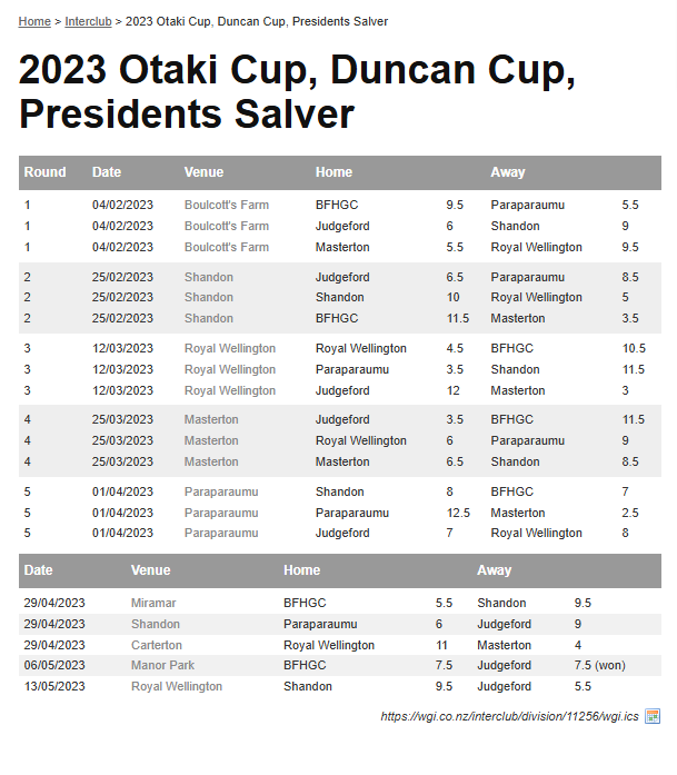 Teams: Judgeford Vs Masterton
