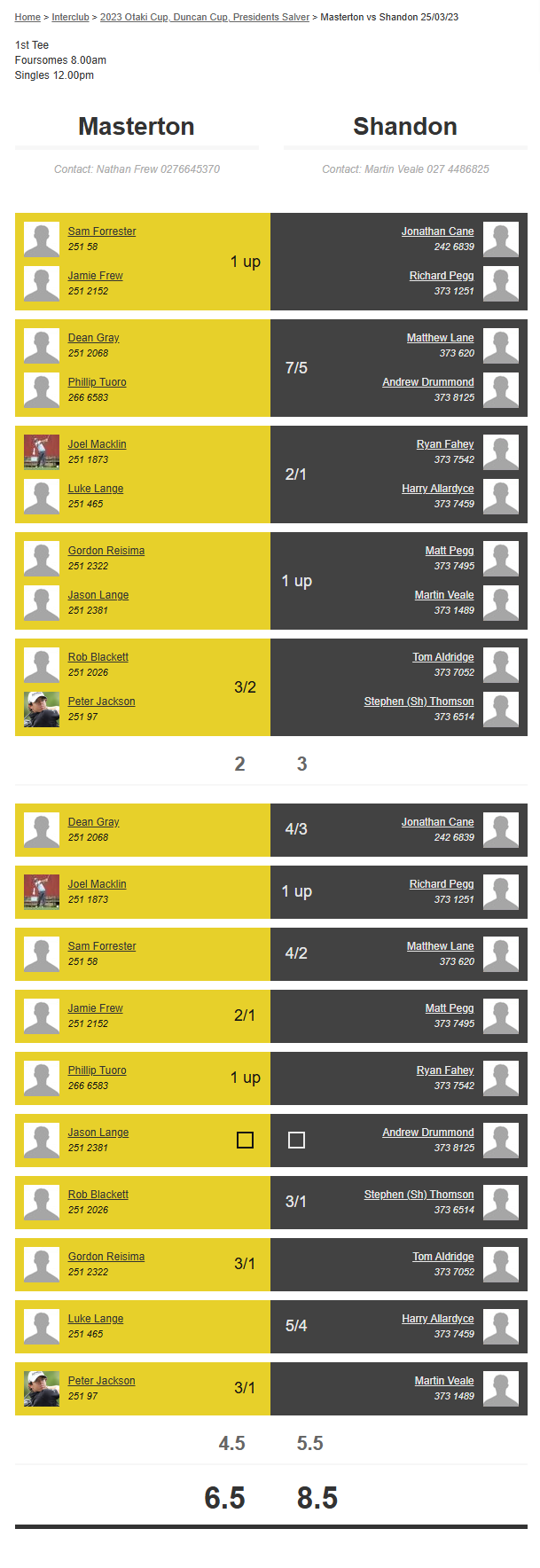 Teams: Masterton Vs Shandon