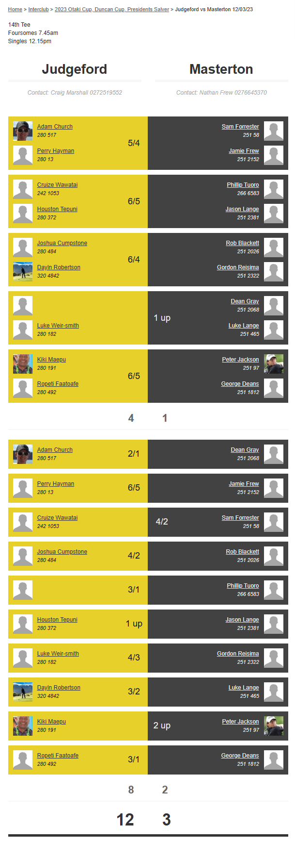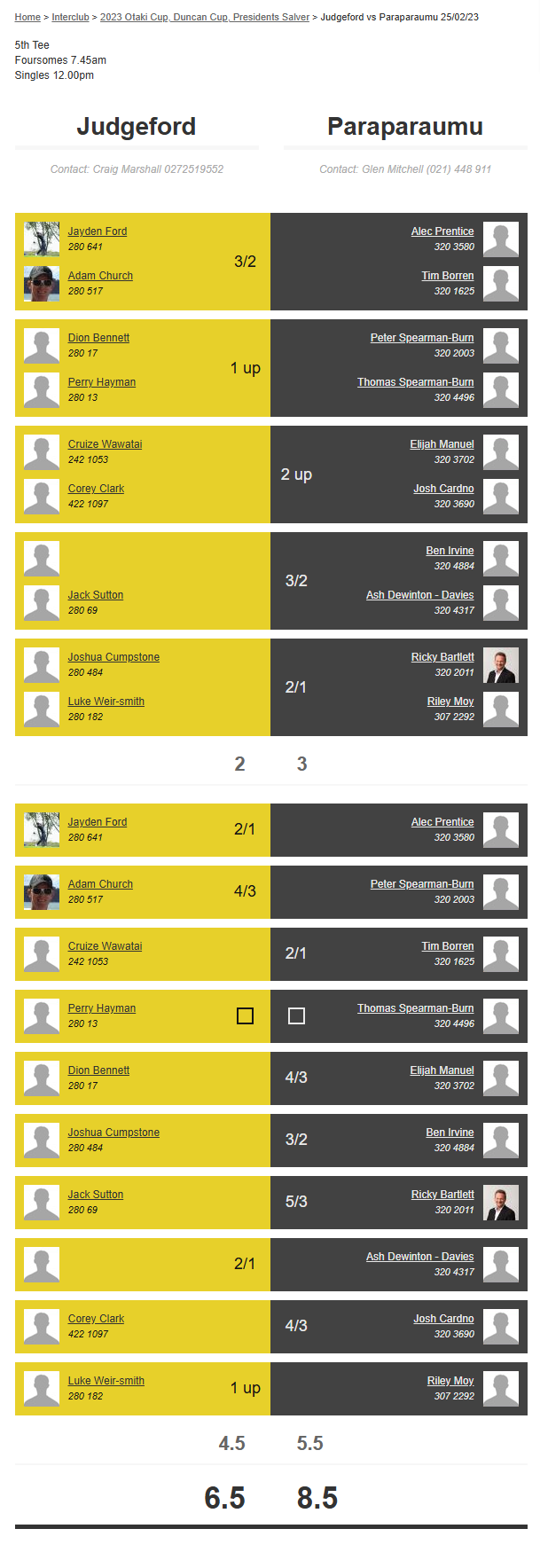 Teams: Paraparaumu Vs Judgeford