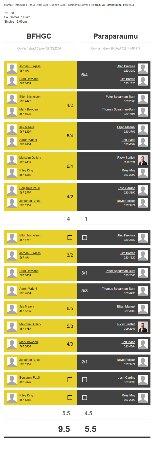 Teams: Bfhgc Vs Paraparaumu
