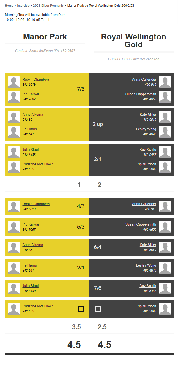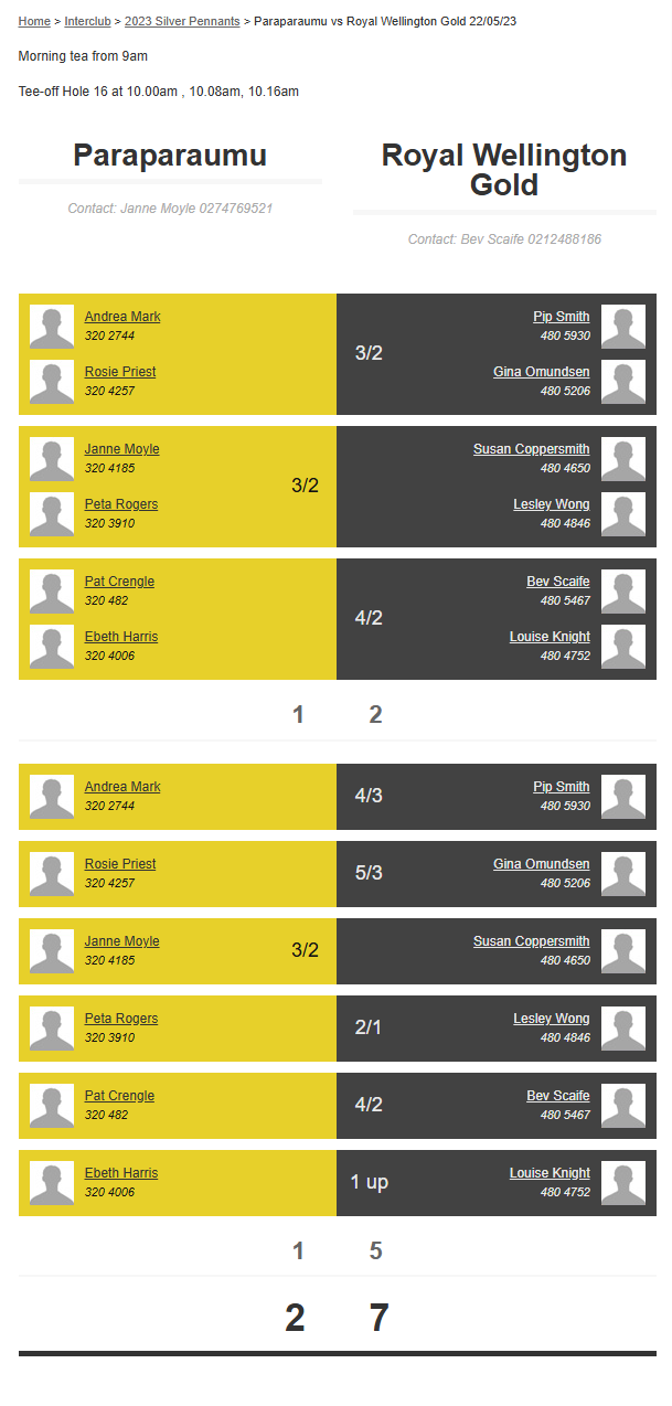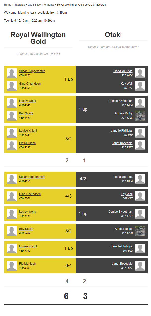 Teams: Royal Wellington Gold Vs Royal Wellington Green