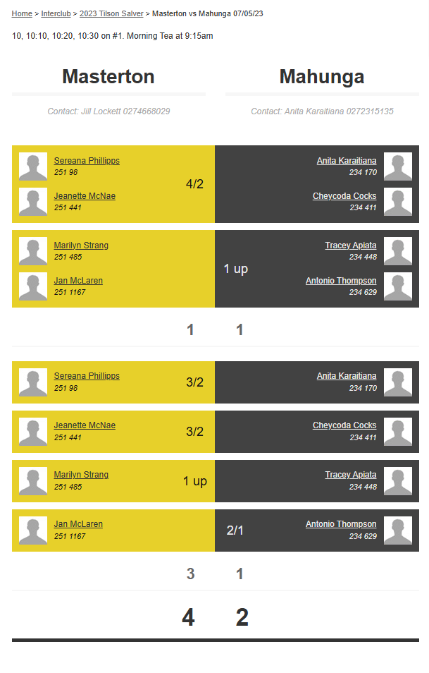 Teams: Mahunga Vs Martinborough