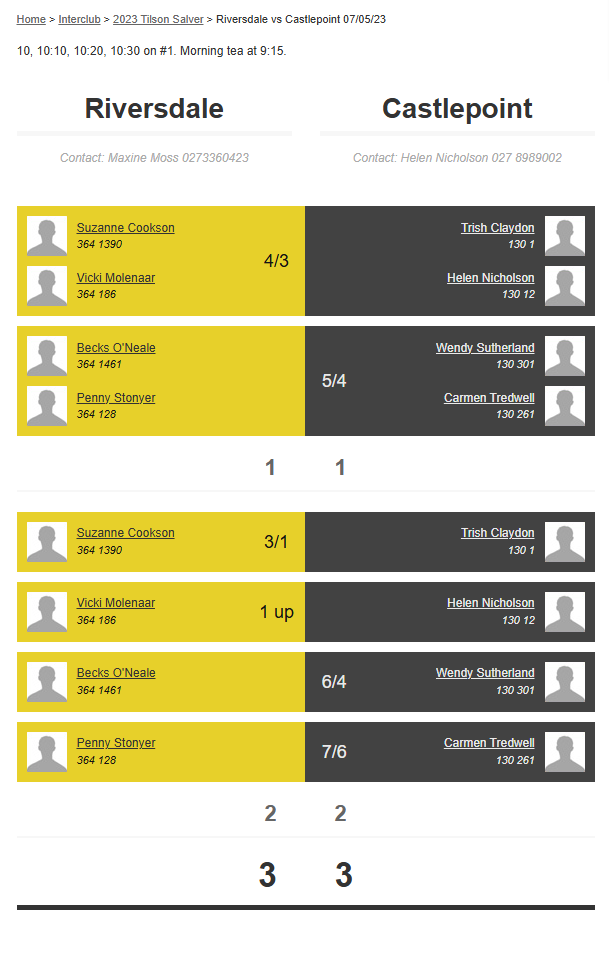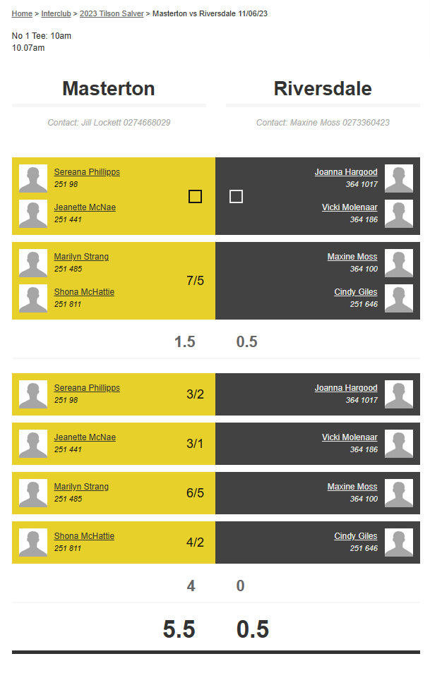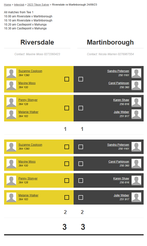 Teams: Riversdale Vs Martinborough