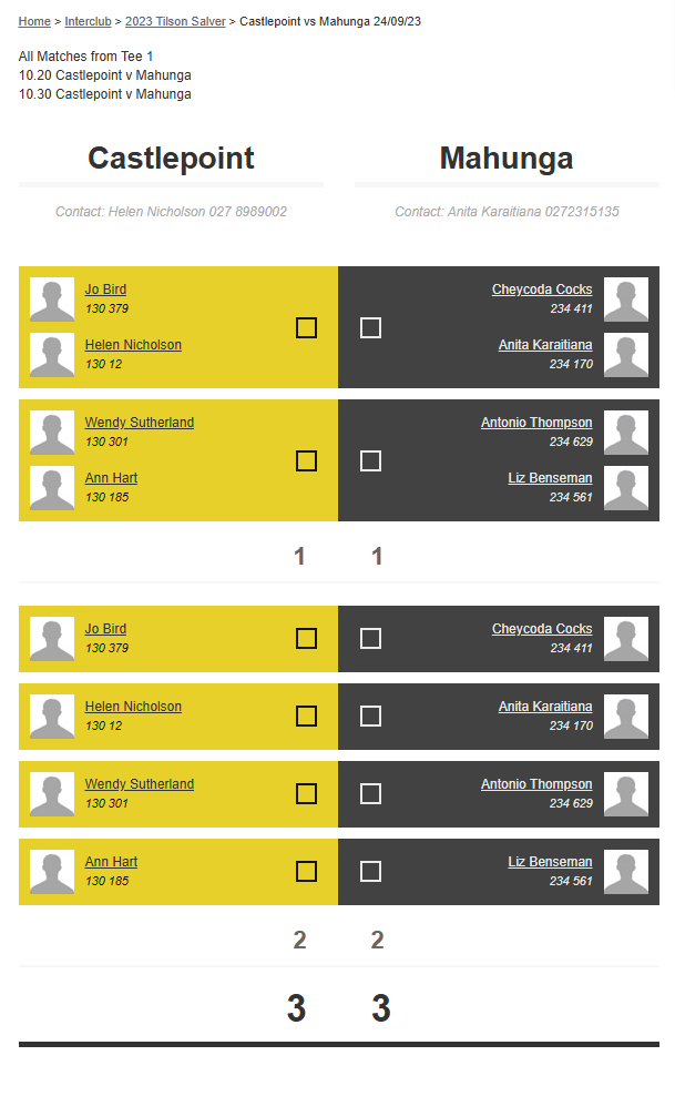Teams: Castlepoint Vs Mahunga