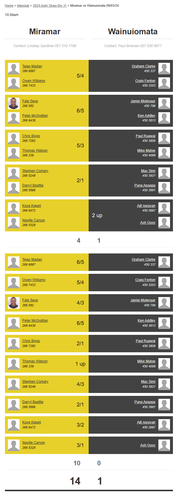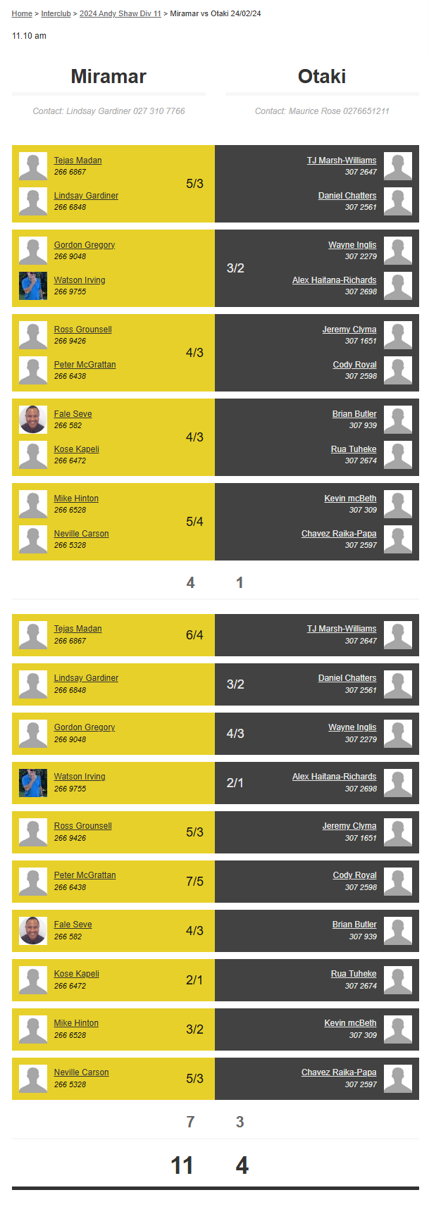 Teams: Miramar Vs Otaki