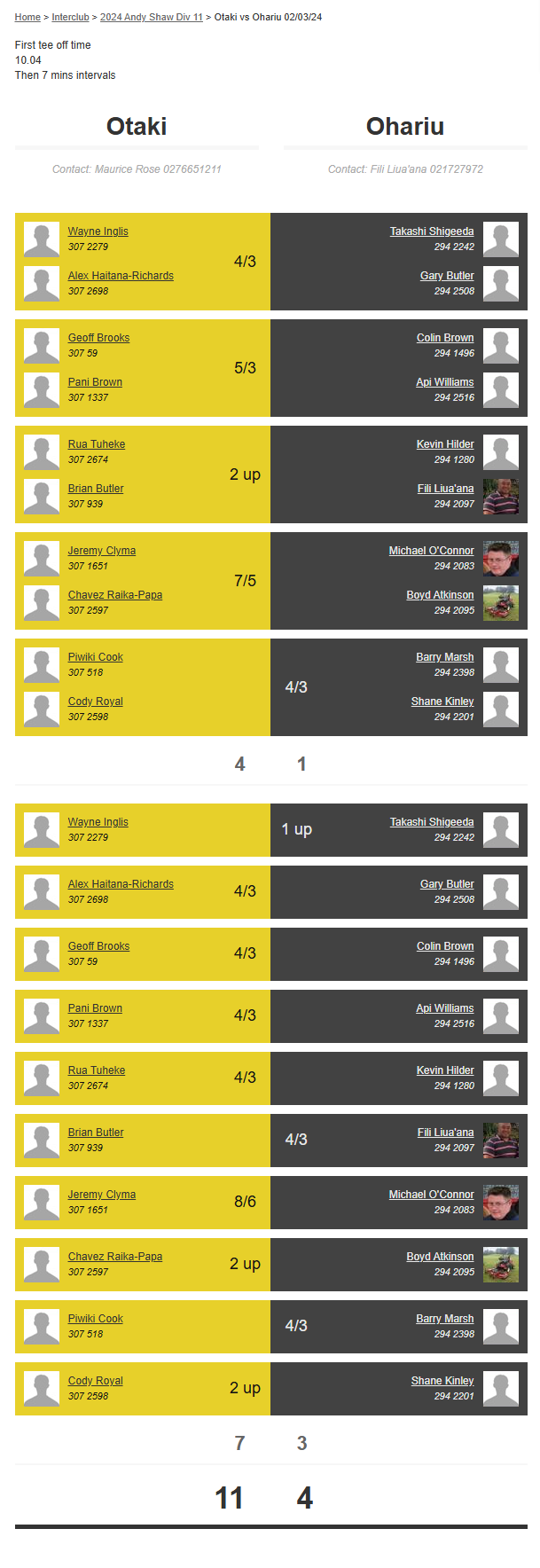 Teams: Ohariu Vs Otaki