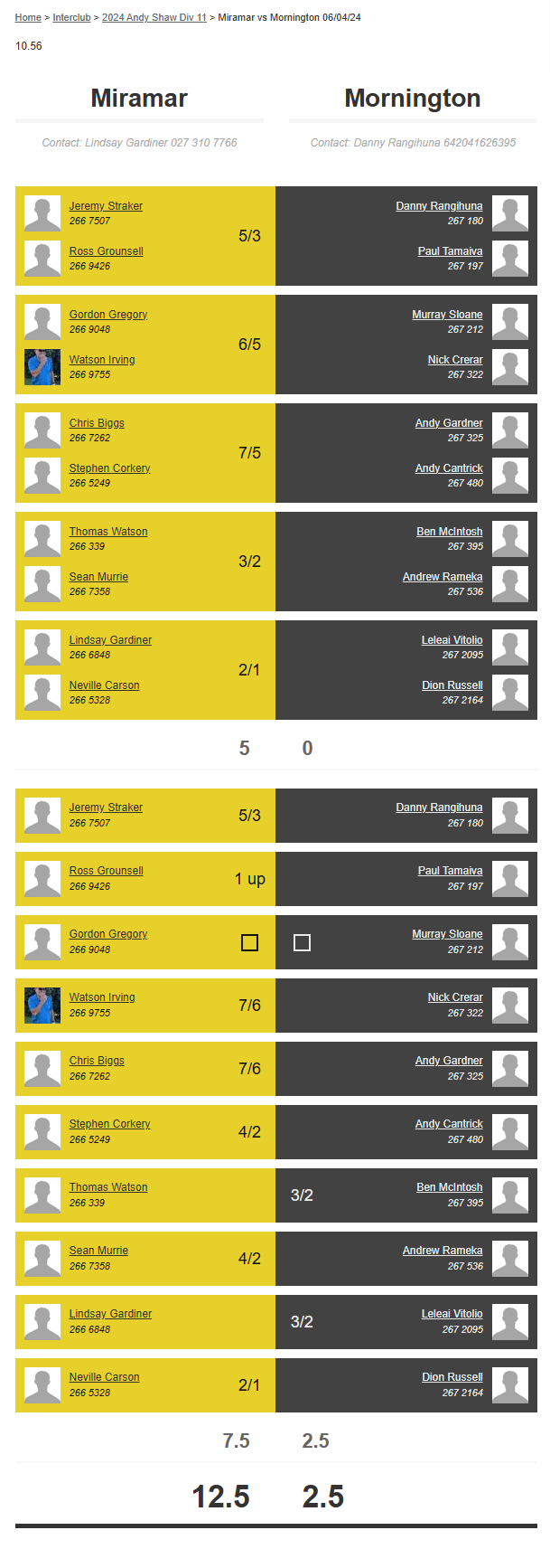Teams: Mornington Vs Miramar