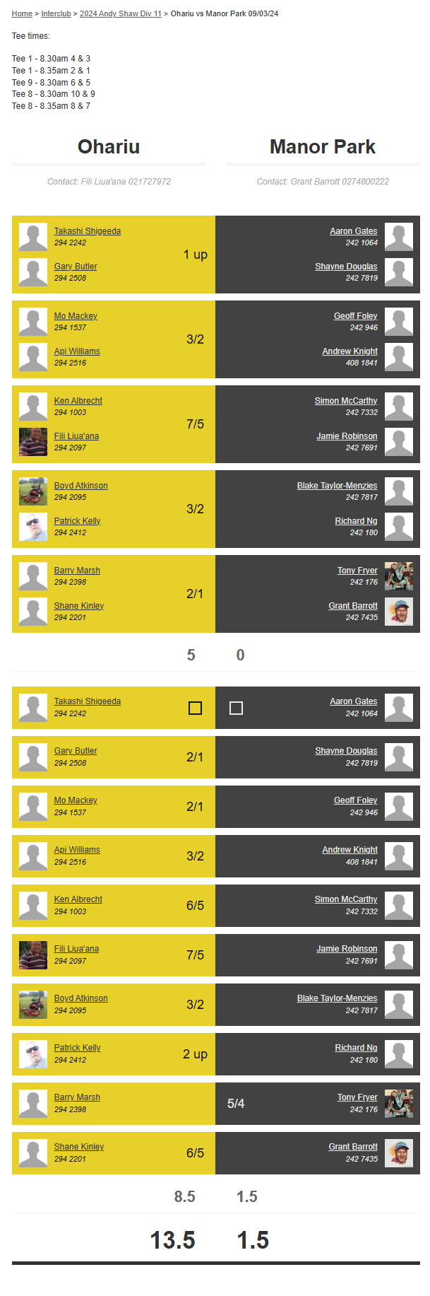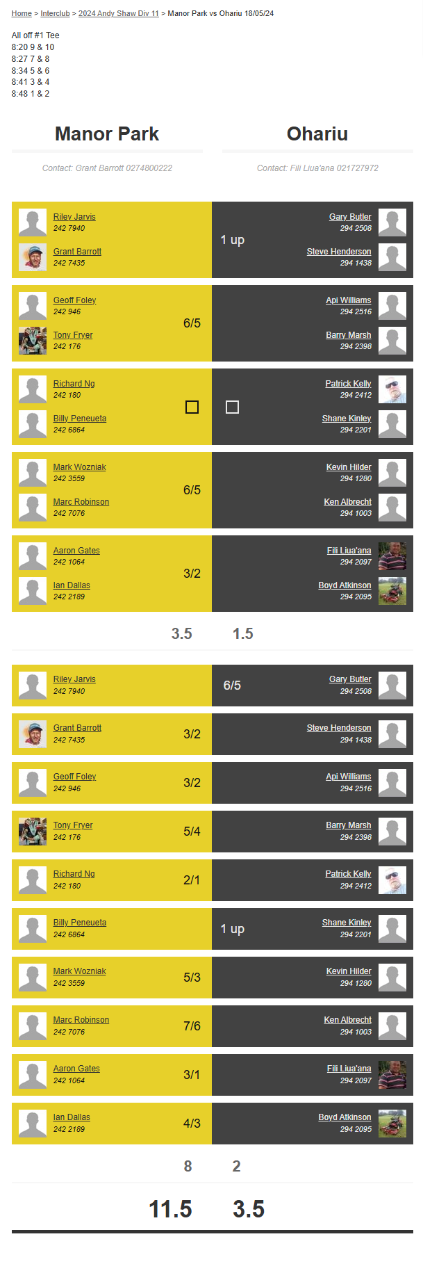 Teams: Manor Park Vs Ohariu