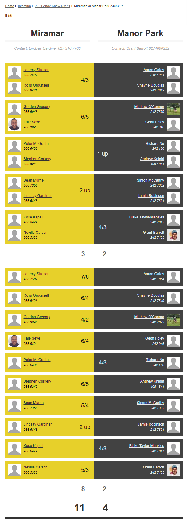 Teams: Miramar Vs Manor Park