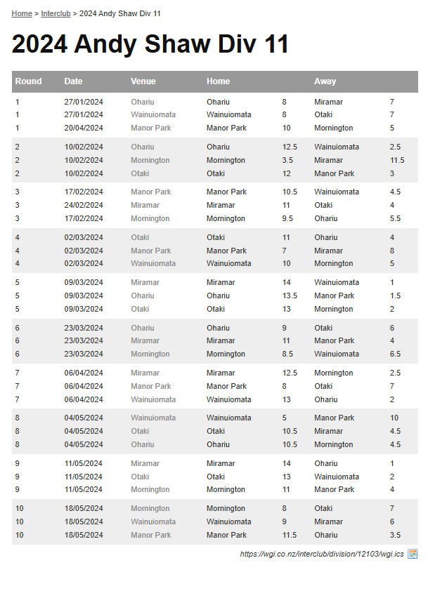 Teams: Wainuiomata Vs Ohariu