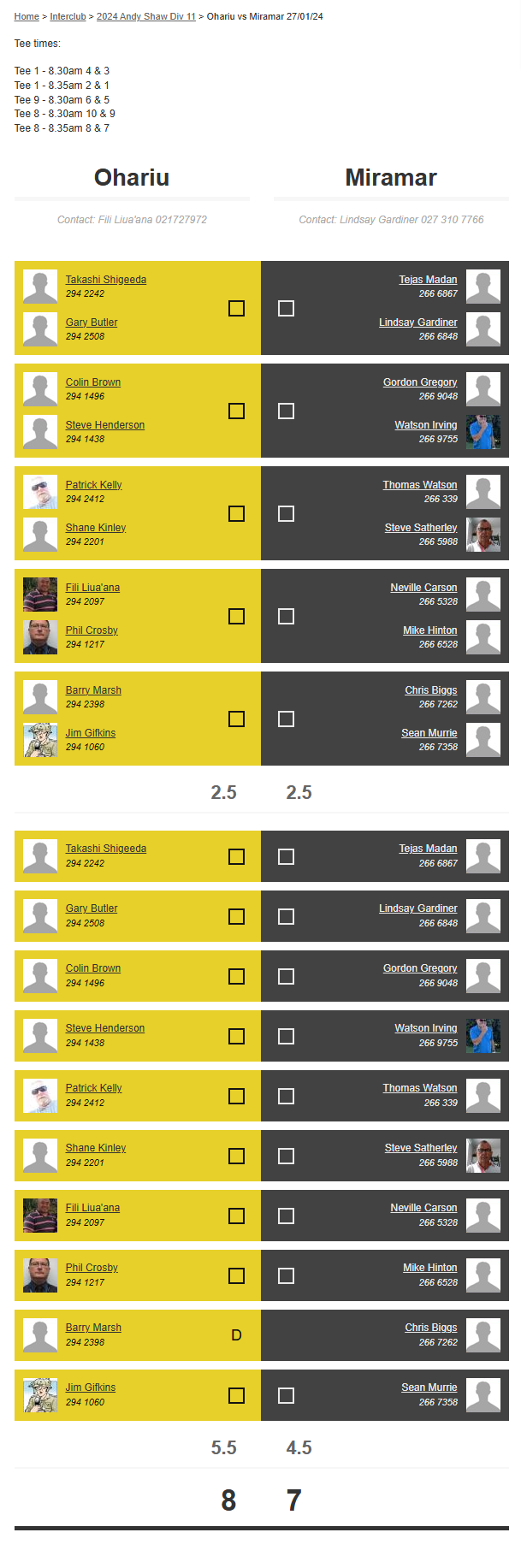 Teams: Miramar Vs Ohariu