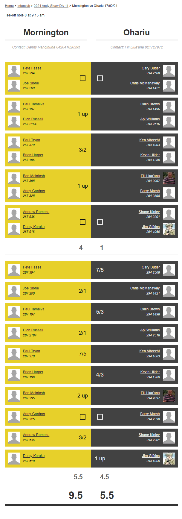 Teams: Mornington Vs Ohariu