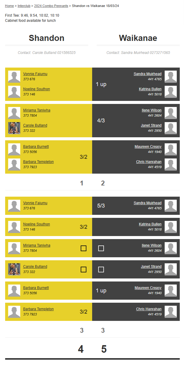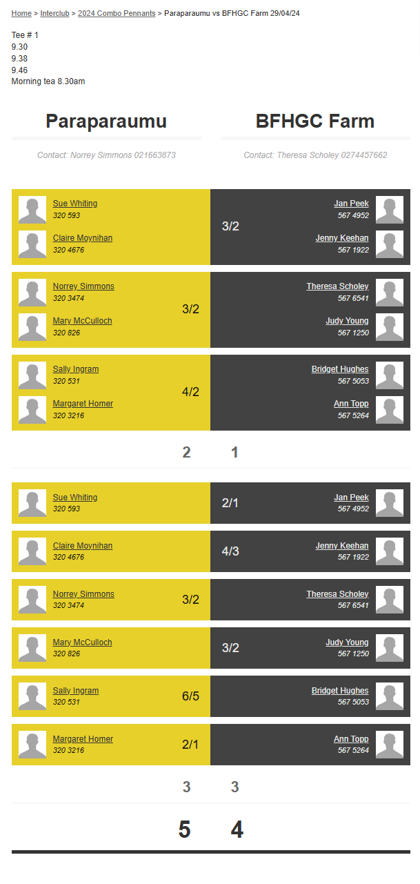 Teams: Waikanae Vs Bfhgc Heritage