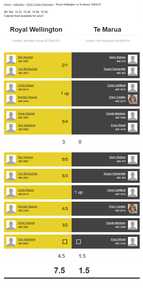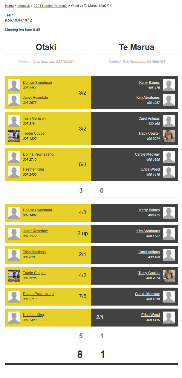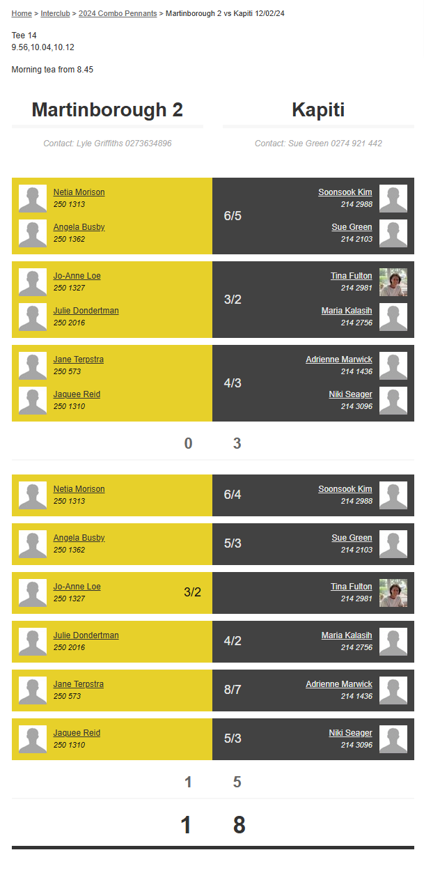 Teams: Te Marua Vs Martinborough 1