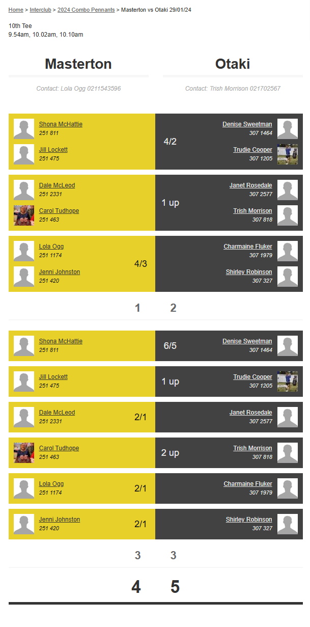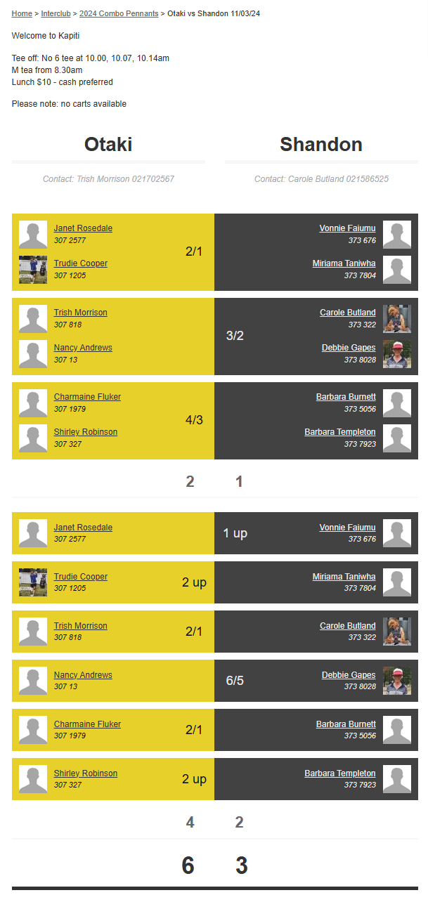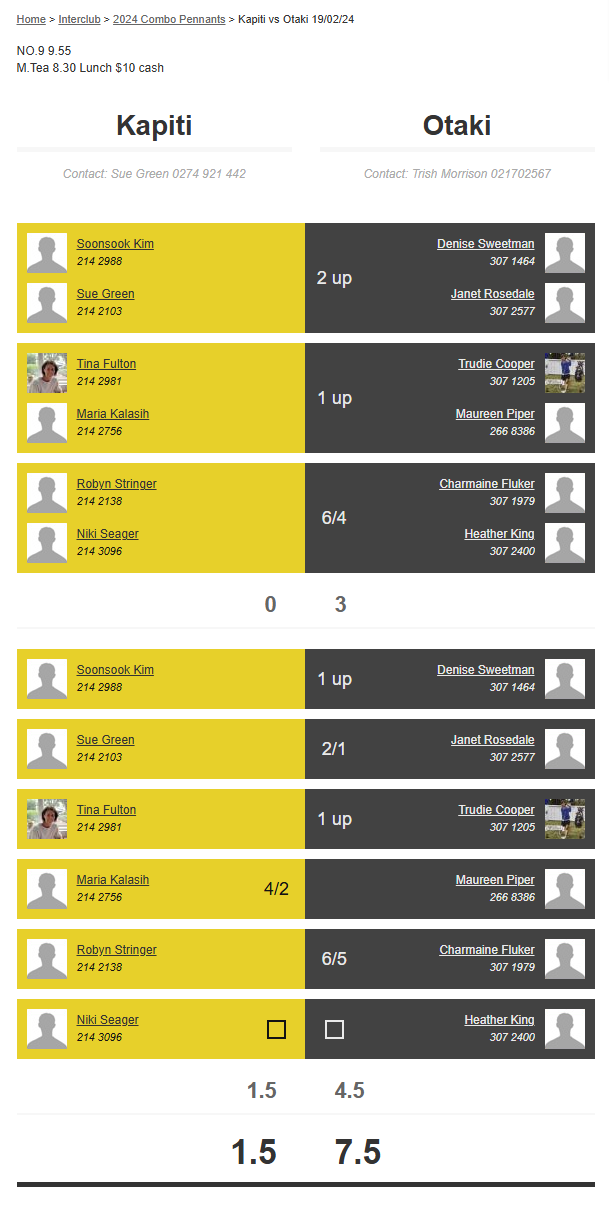Teams: Otaki Vs Martinborough 1