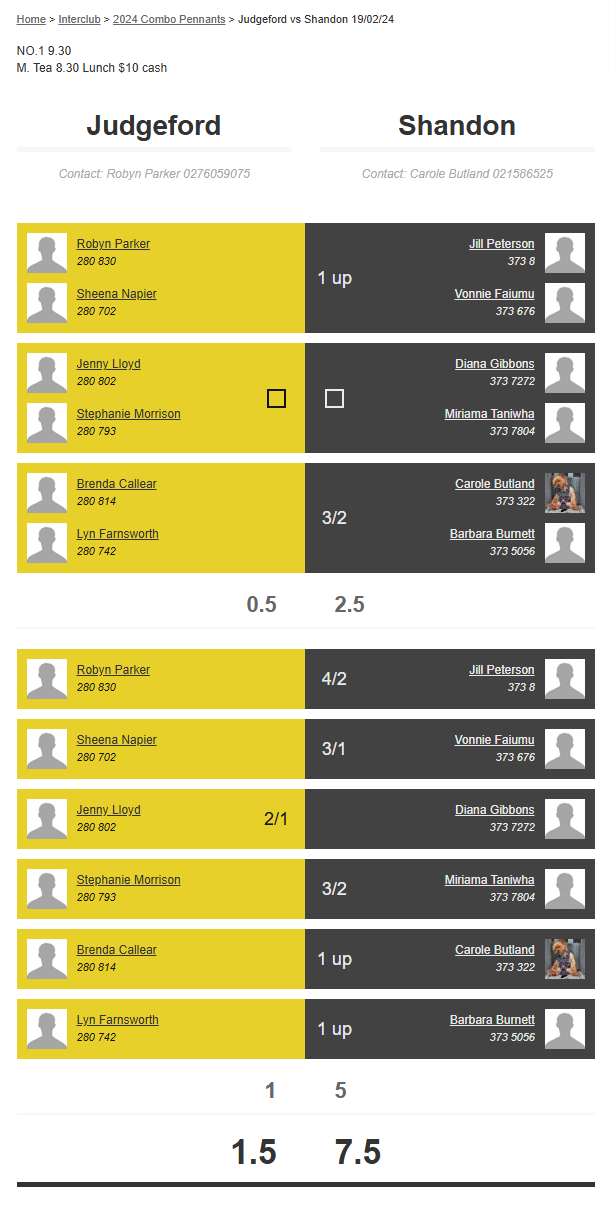 Teams: Judgeford Vs Shandon