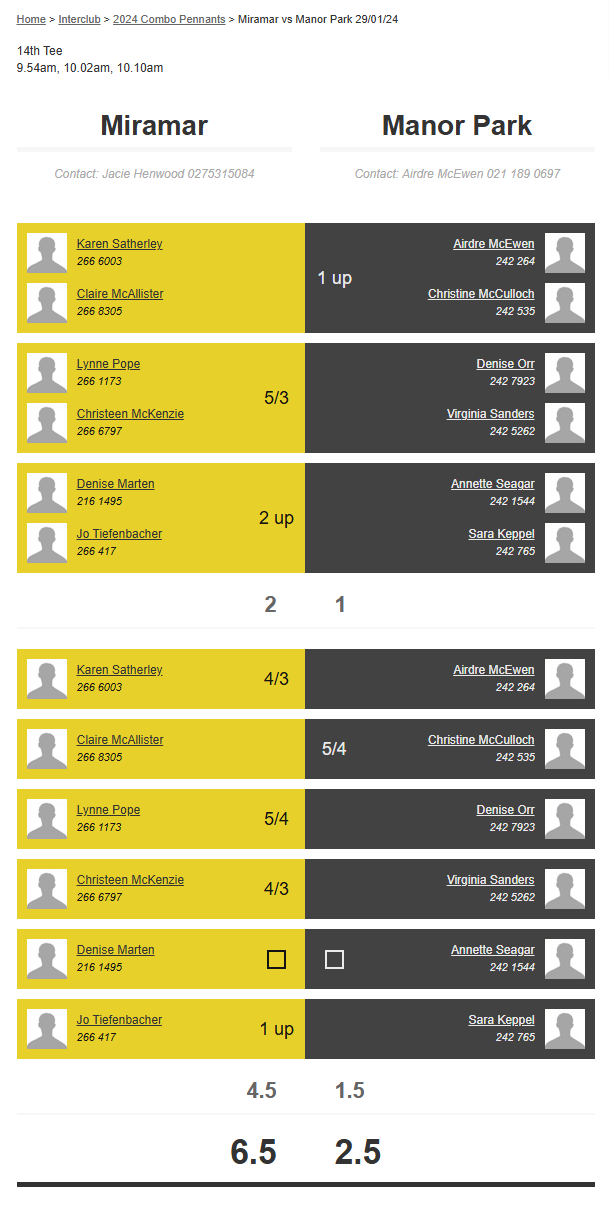 Teams: Miramar Vs Manor Park