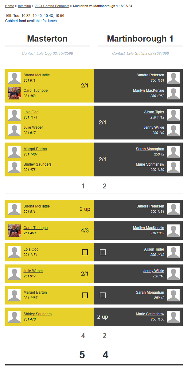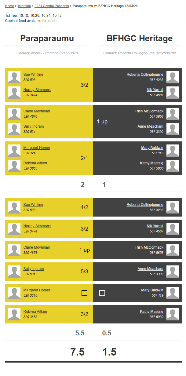 Teams: Martinborough 1 Vs Bfhgc Heritage