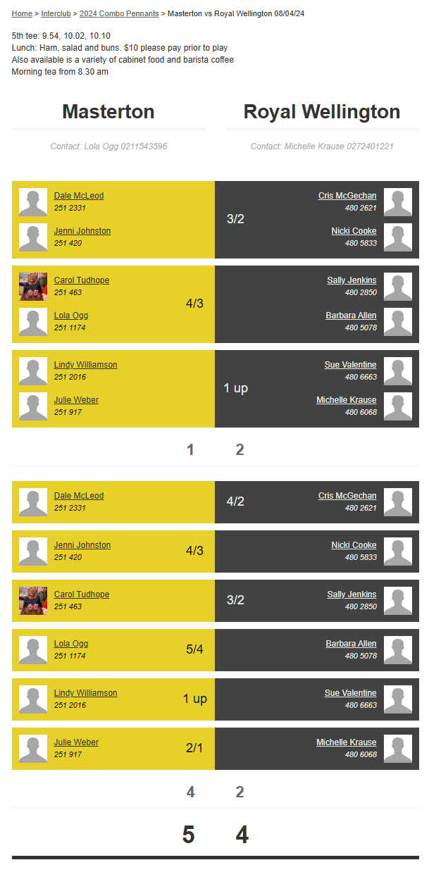 Teams: Royal Wellington Vs Martinborough 1