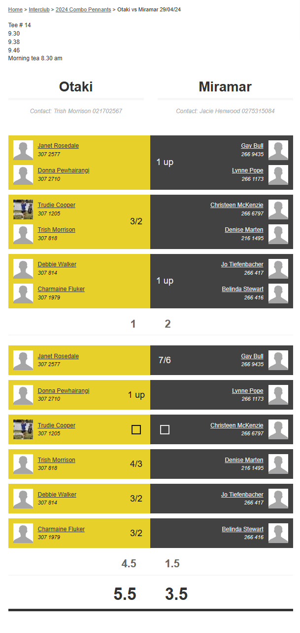 Teams: Otaki Vs Miramar